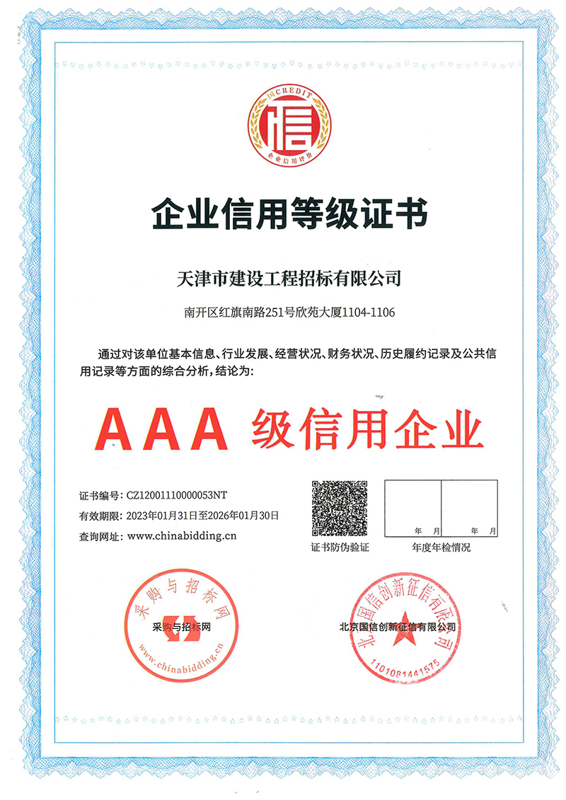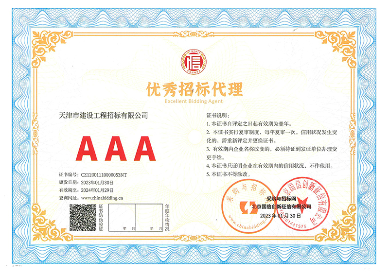 喜訊!天咨下屬招標公司獲評3A級信用企業(yè)和3A級優(yōu)秀招標代理企業(yè)