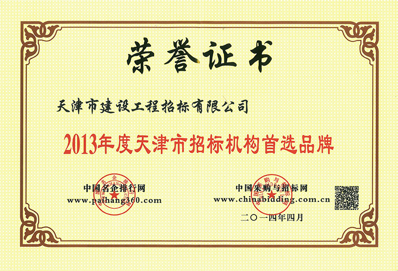 2013年度天津市招標(biāo)機構(gòu)首選品牌