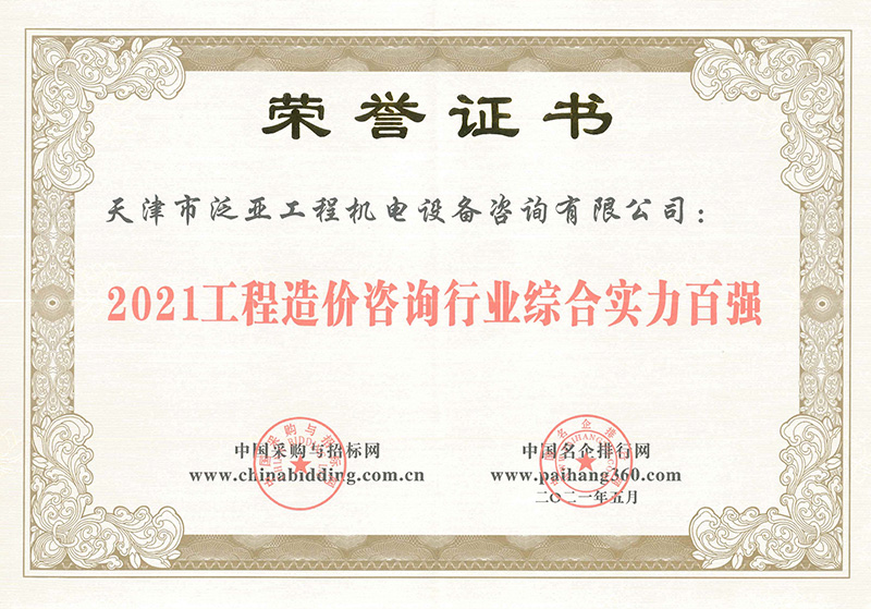 2021工程造價咨詢行業綜合實力百強