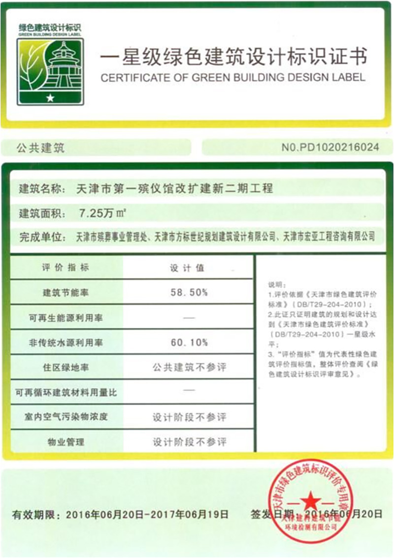 天津市第一殯儀館改擴建項目 更新時間:2021-09-14 點擊:2130 所屬欄目:社會事業 坐落在天津市北辰區鐵東路(第一殯儀館院內)。總投資約3.6億元,總建筑面積7.3萬平米,地上兩層,地下一層,其中:地上5.3萬平米,地下2萬平米,框架結構,屬于天津市民心工程。該項目于2016年6月通過專家會評審,獲得國家一星級綠色建筑設計標識。 服務內容 能評、綠建咨詢、招標代理