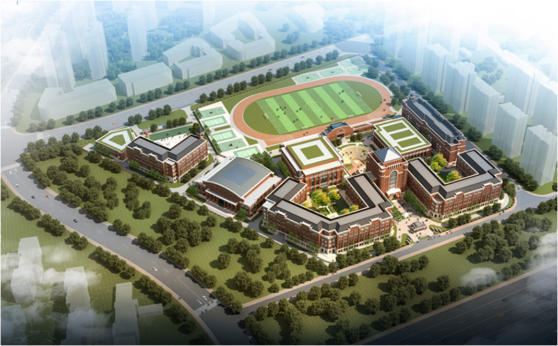 工程總建筑面積8.6萬平米,其中地上建筑包含教學樓、綜合樓、宿舍、食堂、會議中心、體育中心、看臺、國際部教學樓及食堂共計7.4萬平米;地下車庫及設備用房建筑面積1.2萬平米。